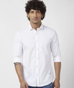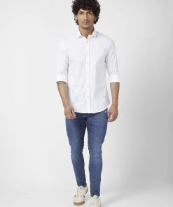Luxury Feel Spykar Men White Dyed Regular Slim Fit Full Sleeve Plain Shirt – Limited Release!