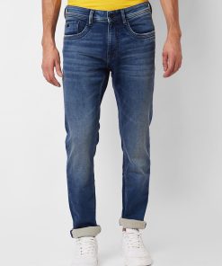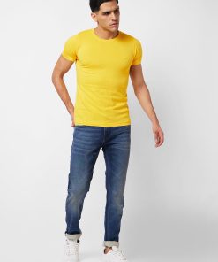 Premium Quality Spykar Men Solid Blue Slim Fit Half Sleeves T-Shirt – Limited Availability!