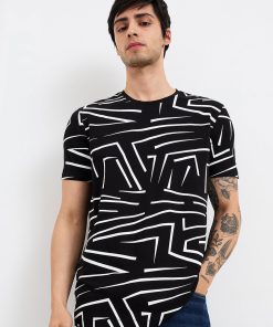 Premium Quality Spykar Black Slim Fit Printed Half Sleeve T-Shirt For Men – Limited Release!