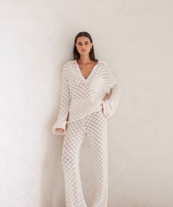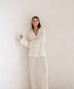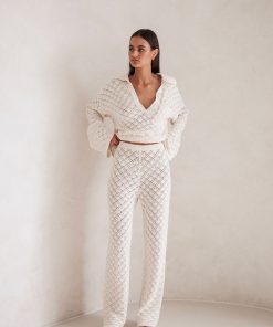The resort style Jaimie Pants are made from a semi sheer natural cotton pointelle knit fabric in a light cream hue. They are a high waisted style featuring an elasticated waist and relaxed fit. Style your look with the Jaimie Top! Designed exclusively by Sabo.