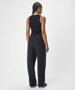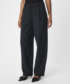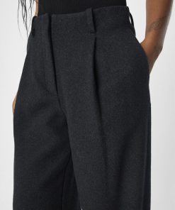 The Meghan trousers have a high waisted, barrel leg fit and are made with a wool blend fabric. Pleated details to the front lend a smart dressy vibe. Side pockets, concealed zip and hook and eye closure complete the look.