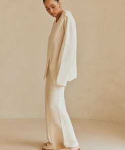 *BACK IN STOCK* Wear it as a set or pair it with jeans, the Mara Top is made from a cosy cotton blend boucle knit in a cream hue. It is a relaxed style featuring slouchy full length sleeves, wide neckline and asymmetric overlay design feature at front. Get the set with the Mara Pants! Designed exclusively by Sabo.
