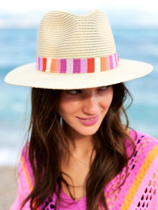 The Ramona Hat is your ultimate summer companion, featuring a classic straw design elevated by bold, colorful ribbon details. Available in vibrant stripes or timeless navy, this hat pairs beautifully with everything from beach cover-ups to breezy dresses. Its structured brim offers just the right amount of shade, making it as practical as it is stylish. Whether you’re strolling along the shoreline or enjoying an al fresco brunch, the Ramona Hat is the finishing touch your outfit deserves.