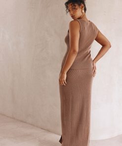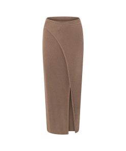 Step in with style in the Bridget Skirt, made from a soft knit fabric in a chocolate brown hue. It is a high waisted style featuring a thin elasticated waist, fixed wrap detail at waist, split and ankle grazing length. Get the look with the Bridget Top! Designed exclusively by Sabo.
