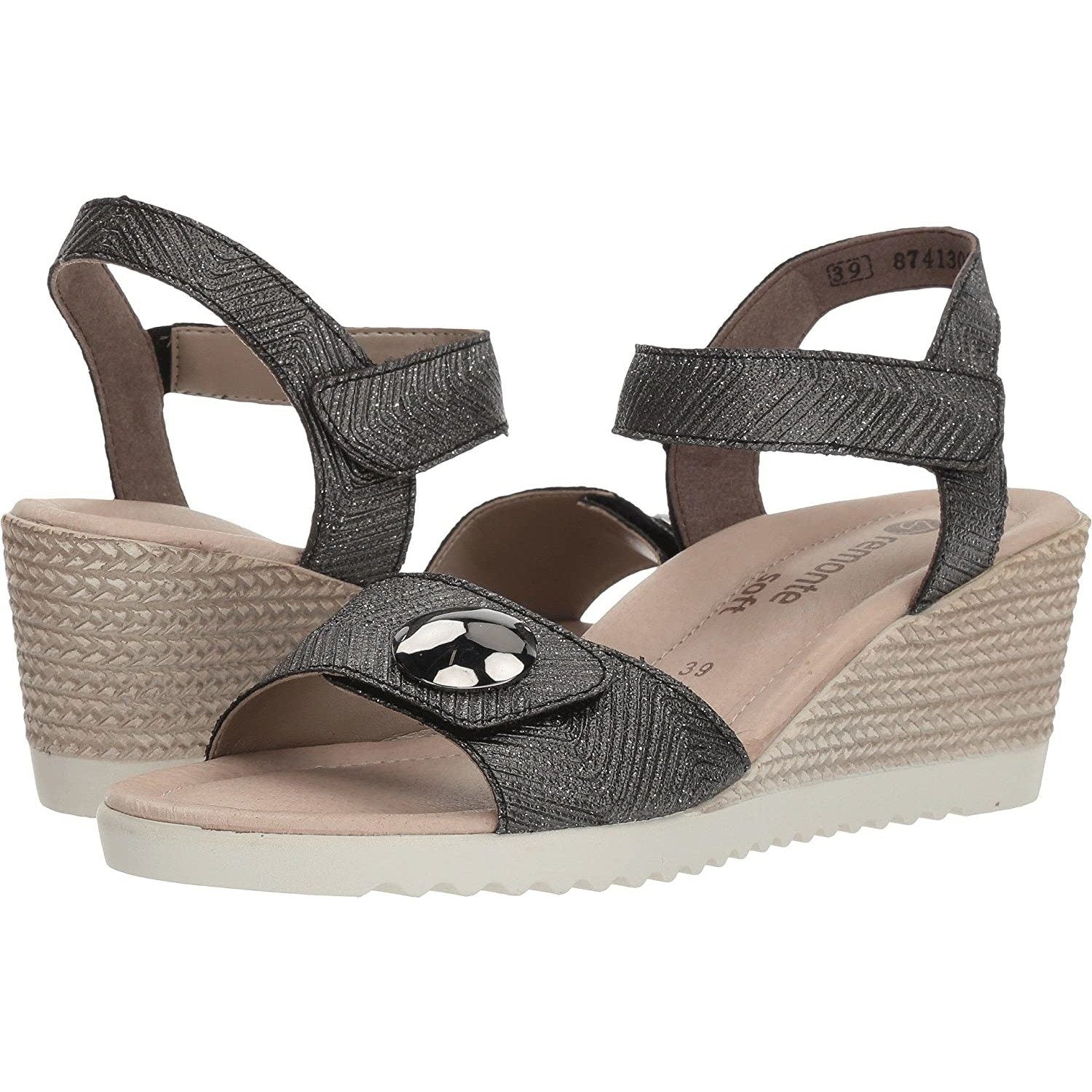 A beautiful summer wedge, the Rieker D3464 02 has adjustable straps that accommodate any width. It’s a shoe you can dress up or down, and is a great option for customers with difficult feet who want to look stylish but need comfort and support for long wear. Oversized reflective buttons and textured rope details are just the right touch for any summer occasion.