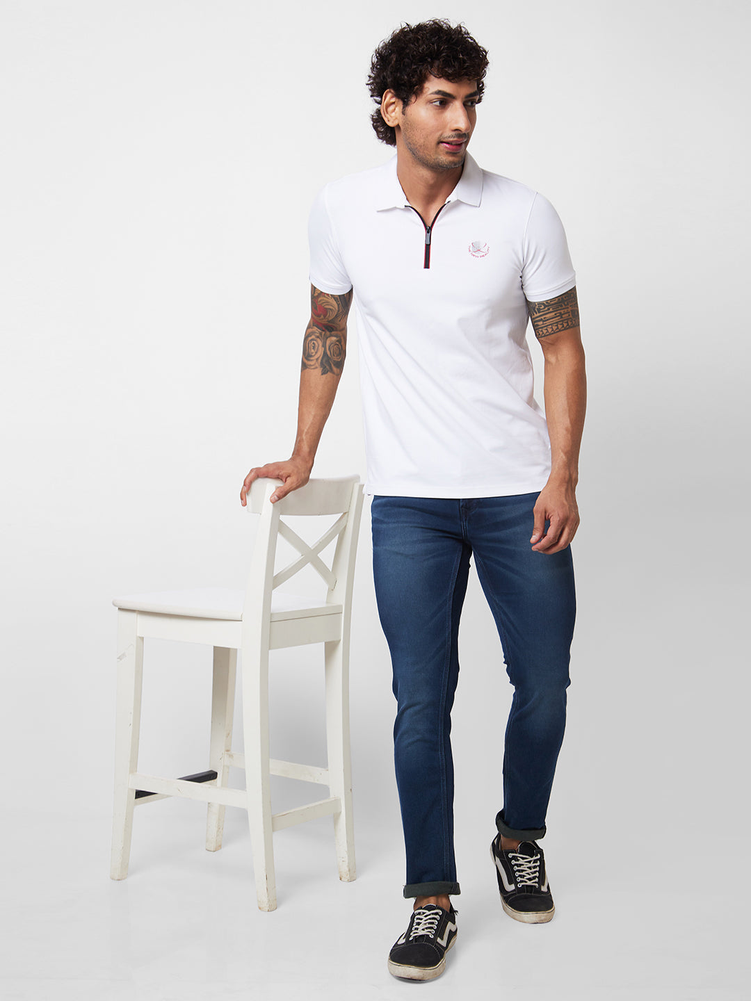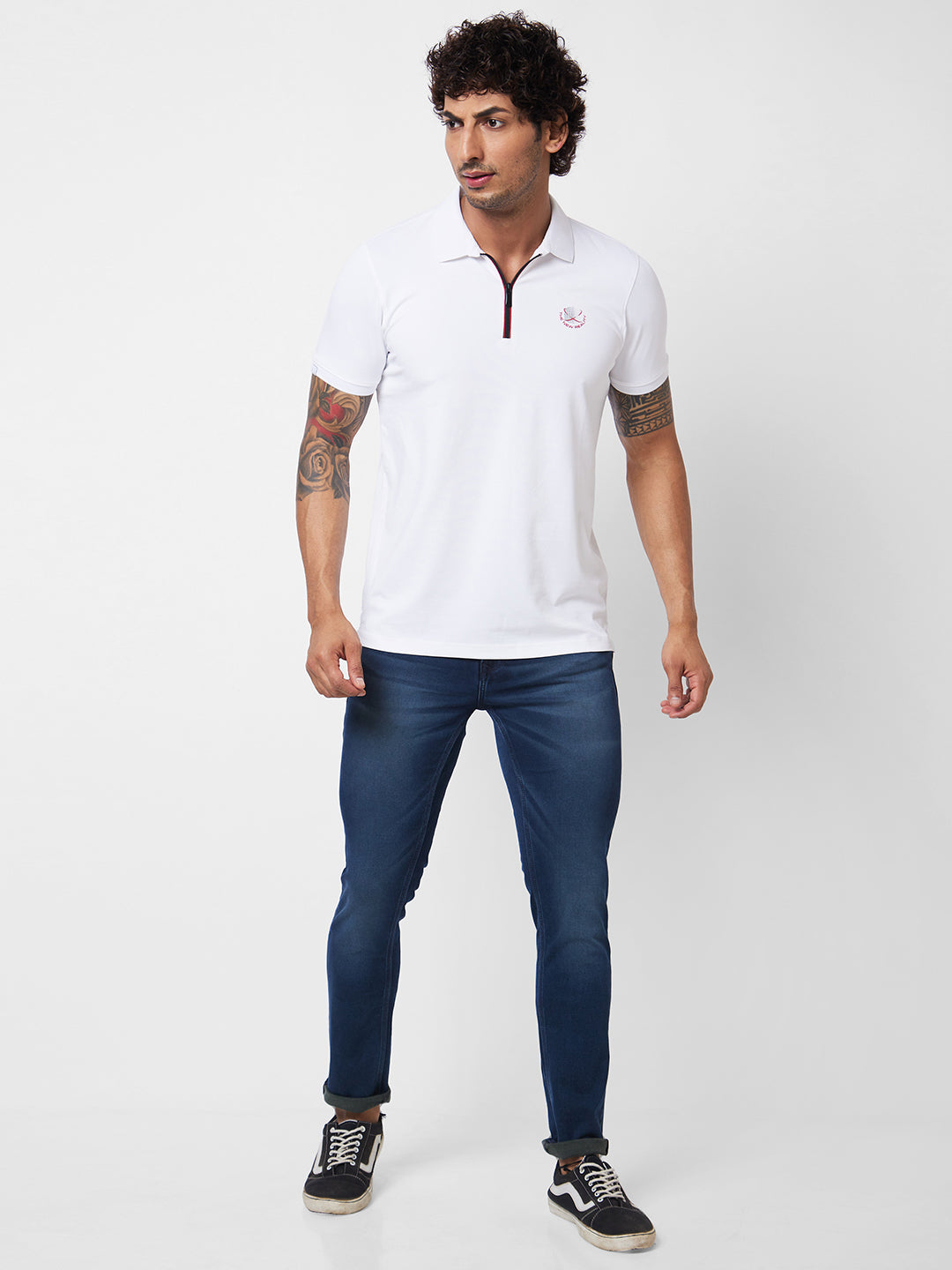 Customer Favorite Spykar SLIM FIT White Polo T-shirt For Men – Stylish & Comfortable