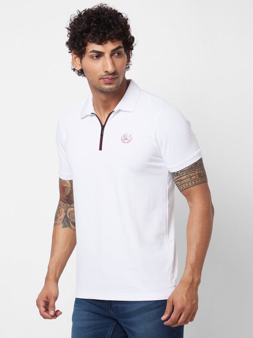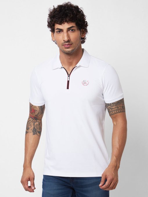 Customer Favorite Spykar SLIM FIT White Polo T-shirt For Men – Stylish & Comfortable