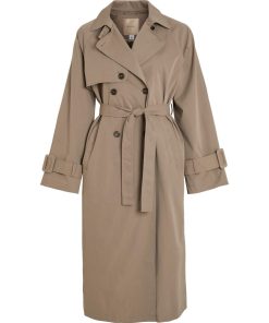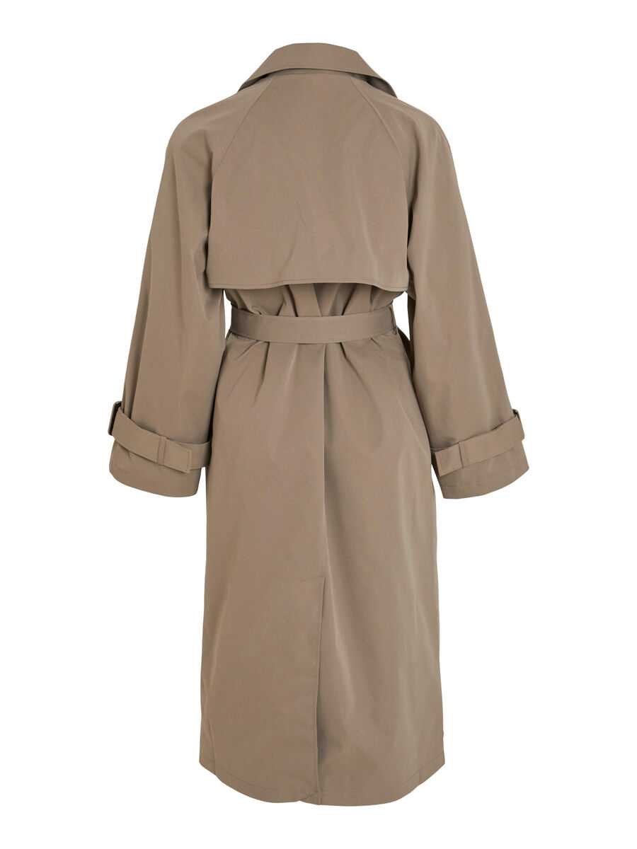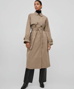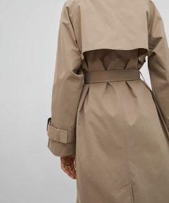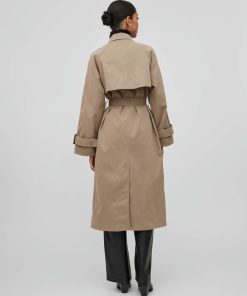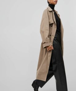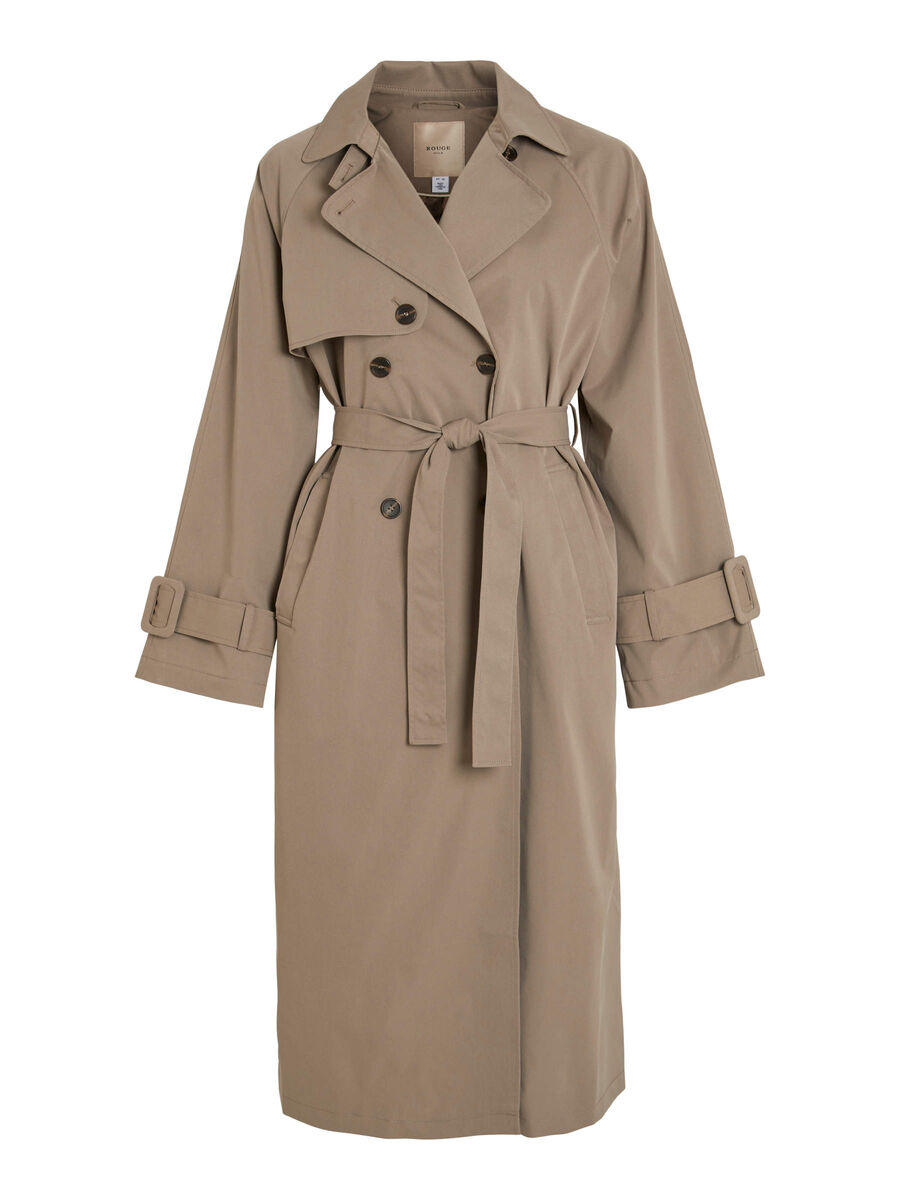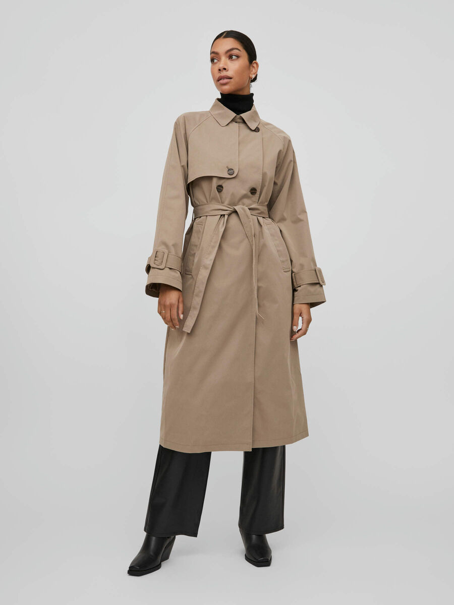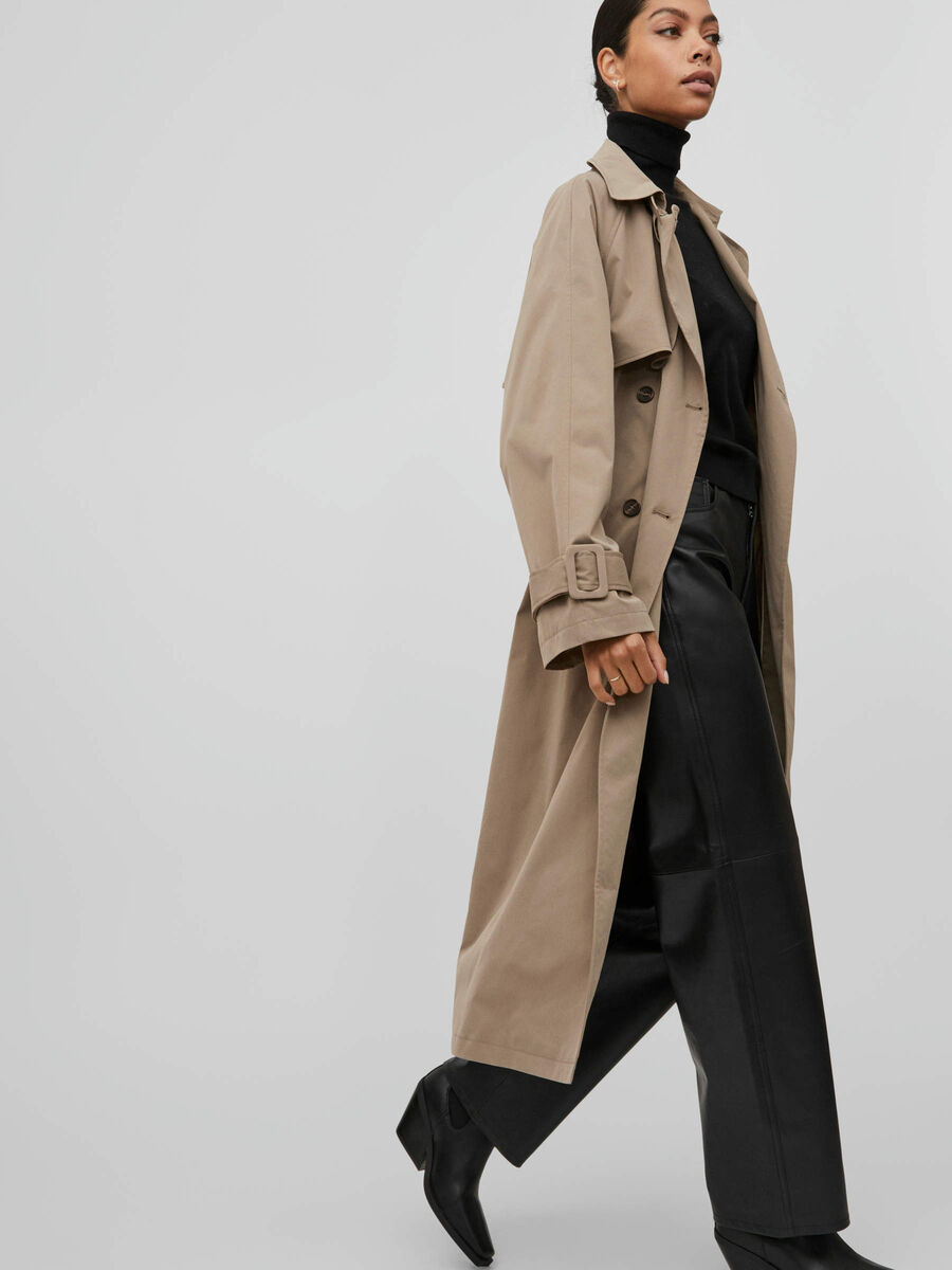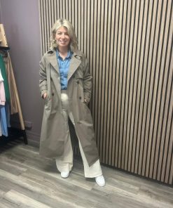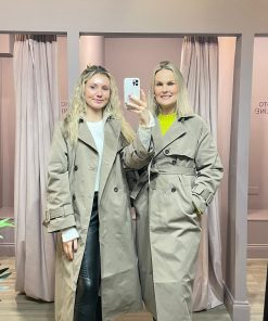 This long, womens trenchcoat is a wardrobe essential. The belt and double-breasted design gives it a timeless vibe, creating a style you can wear year after year. This classic trenchcoat is the perfect transseasonal coat.