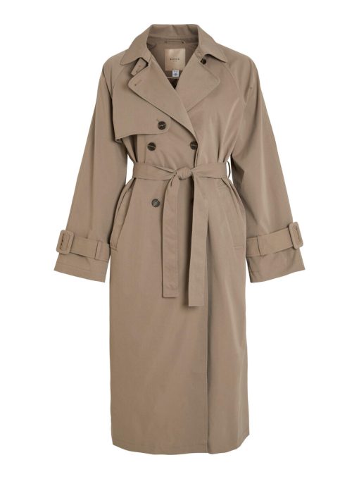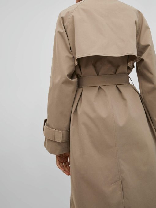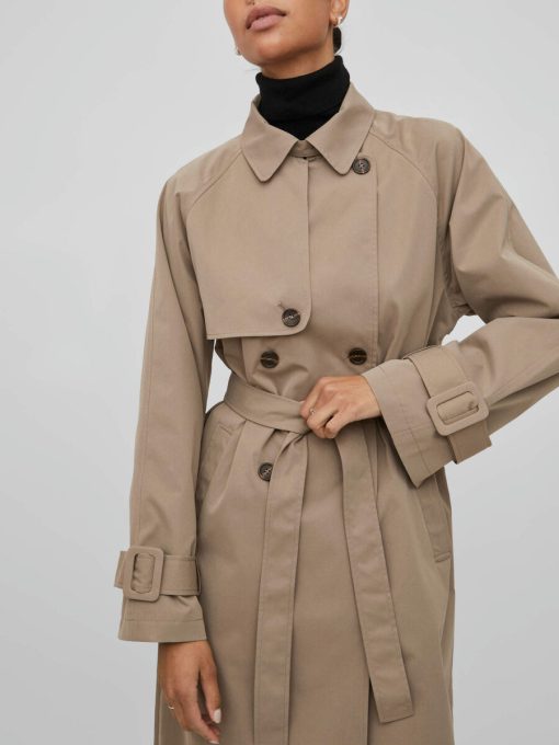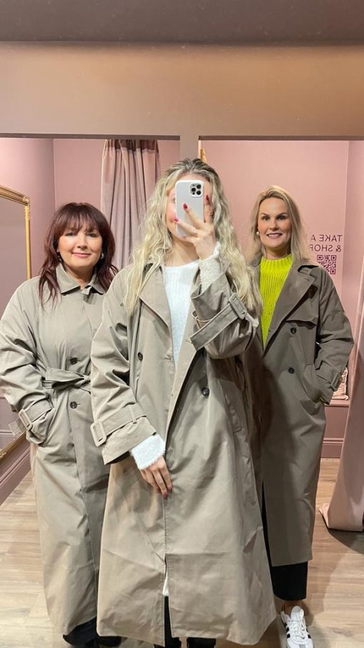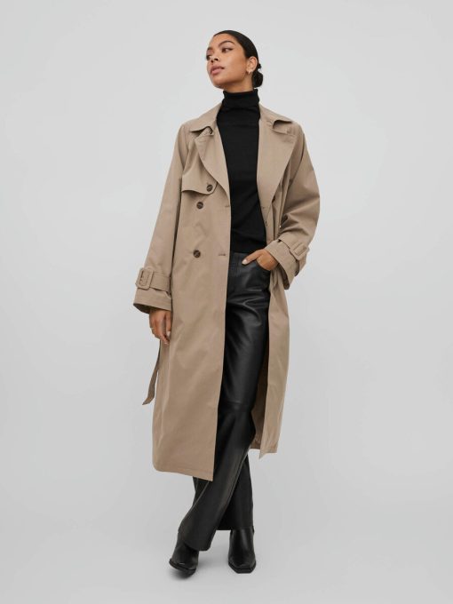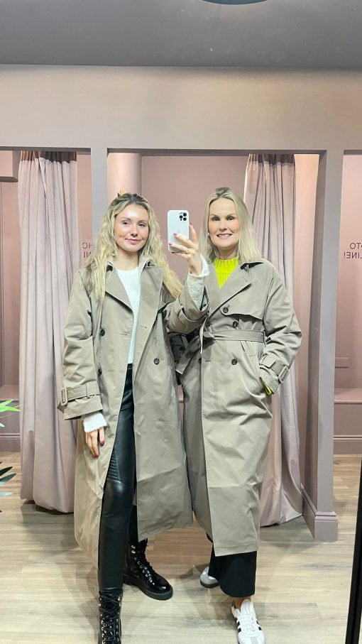 This long, womens trenchcoat is a wardrobe essential. The belt and double-breasted design gives it a timeless vibe, creating a style you can wear year after year. This classic trenchcoat is the perfect transseasonal coat.