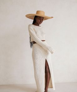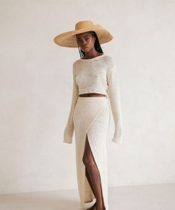 Wear it as a set or pair it back with jeans! The Harley Top is made from a soft loose knit in a creamy hue. It features knuckle length sleeves, ribbed trims, high neckline, relaxed fit and a cropped hem. Get the set and pair with the Harley Skirt! Designed exclusively by Sabo.
