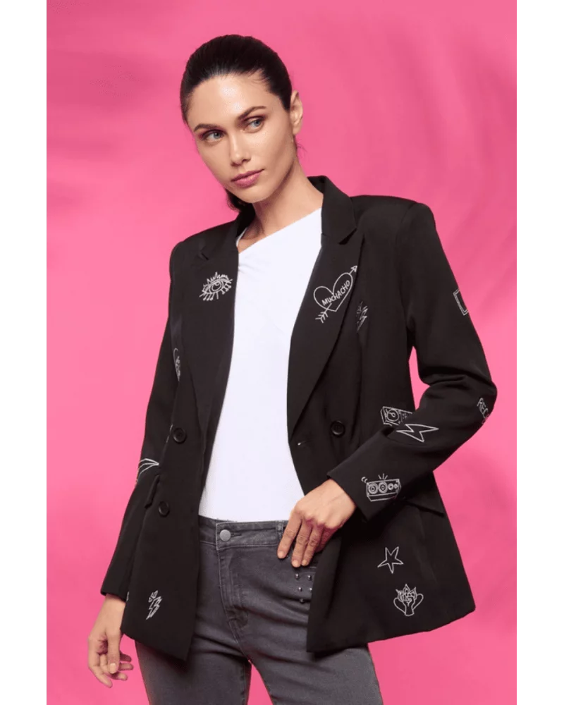 Enhance your fashion game with the Music Blazer. This sleek jacket boasts a unique music print design, complete with a lapel collar, long sleeves, front pockets, and double breast closure with buttons. Its standout style and functional features make it a must-have for any wardrobe.