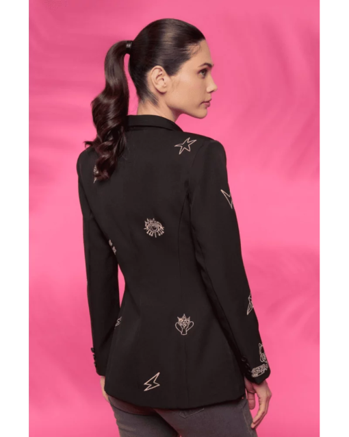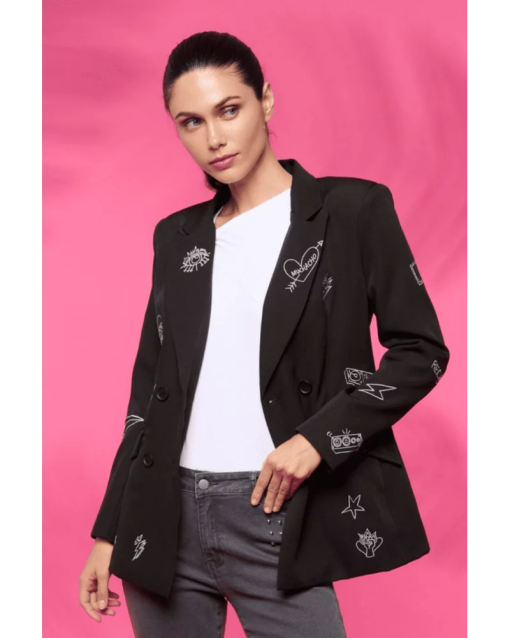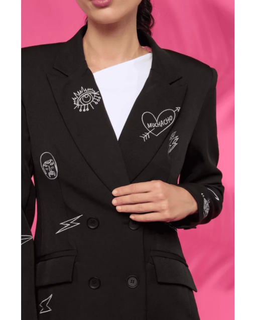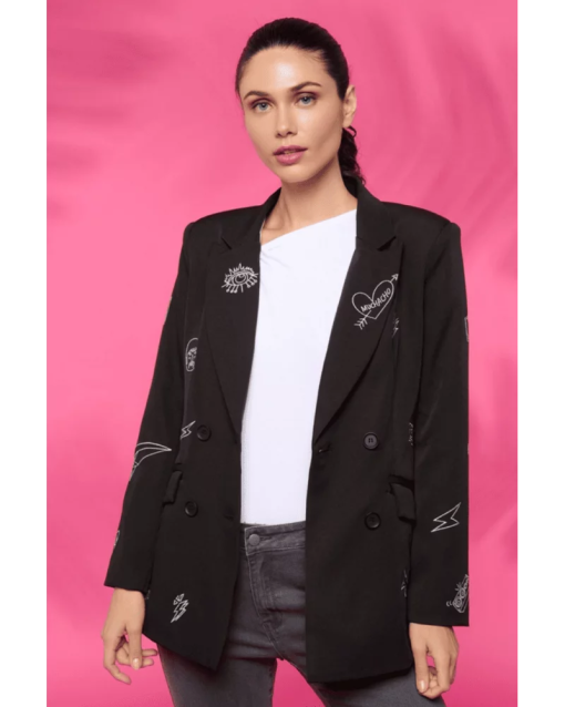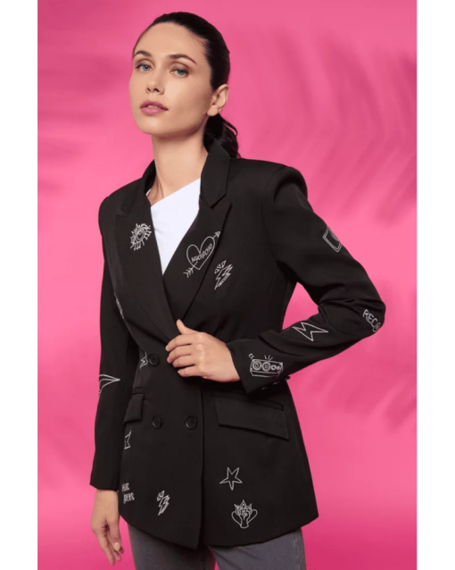 Enhance your fashion game with the Music Blazer. This sleek jacket boasts a unique music print design, complete with a lapel collar, long sleeves, front pockets, and double breast closure with buttons. Its standout style and functional features make it a must-have for any wardrobe.