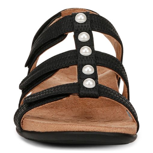 Smart and stylish, Amber’s four straps adjust easily for those long flights and workdays when your feet need a little more breathing room. Four points of adjustability on this backstrap sandal deliver completely customizable comfort. A row of pearl beads add interest to the top of the vamp.