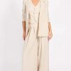The Fia are an elasticated, high waisted pants with a wide leg fit. Additional features include a string tie at the waist, front crease and side pockets.