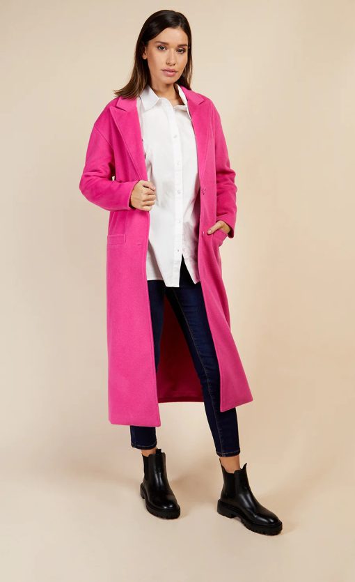 Introducing the VANYA oversized coat by Vogue Williams & Little Mistress. It is single-breasted made with a wool blend in a candy pink hue and is sure to keep you cosy in the Winter months. Featuring lapel collar, button closure and pockets at front. Its relaxed fit is sure to flatter every figure.