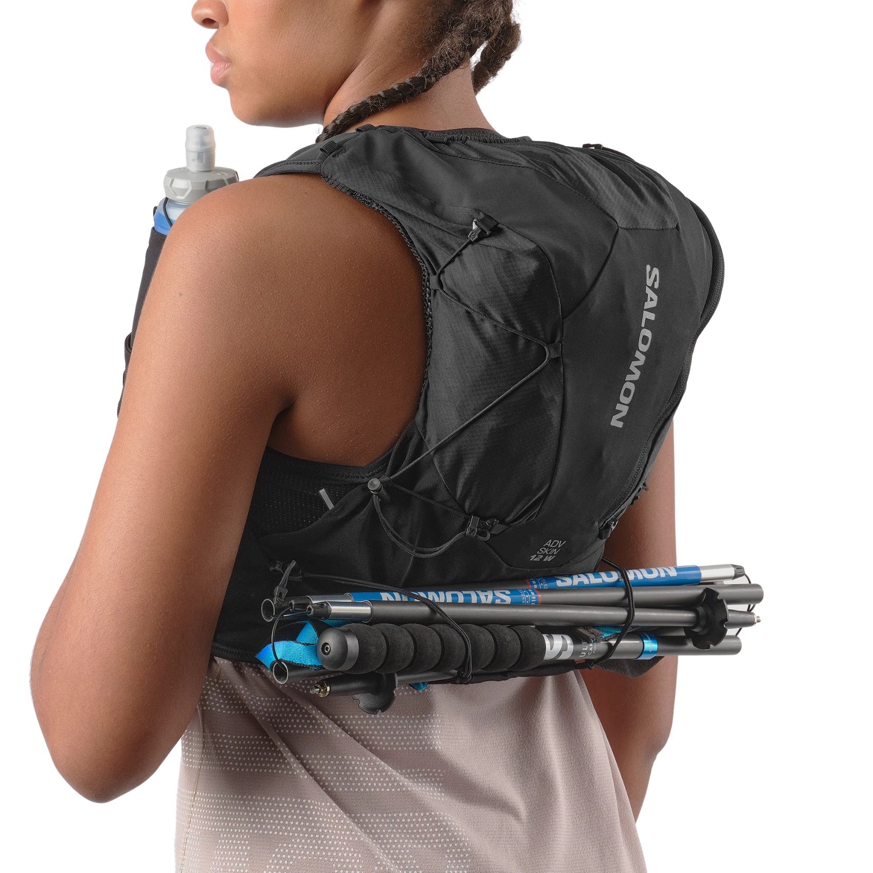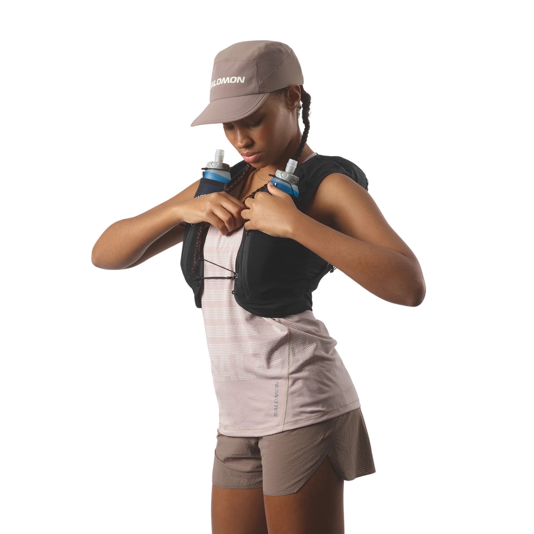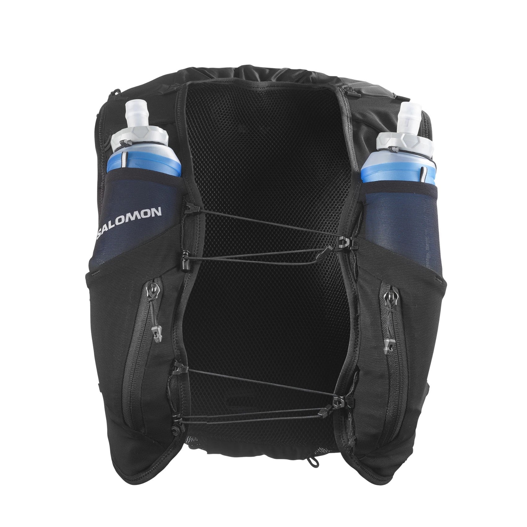 - 2 front flask pockets: to fit Salomon 500ml soft flasks,