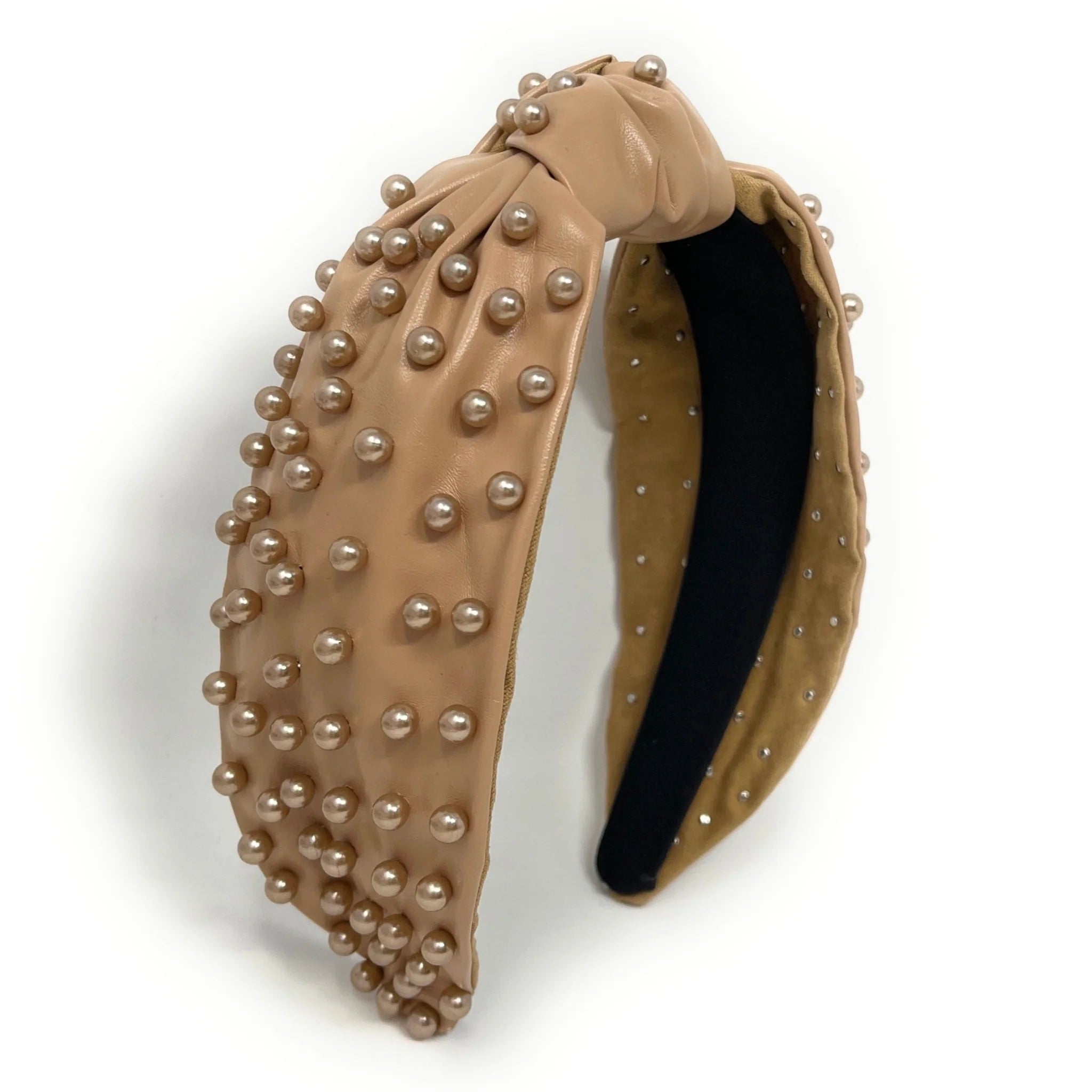 Indulge in chic and fun fashion with our Beige Pearly Knot Headband. Made of high-quality PU leather, this top knot accessory is a must-have for anyone looking to elevate their style. Step up your fashion game today with this statement headband!