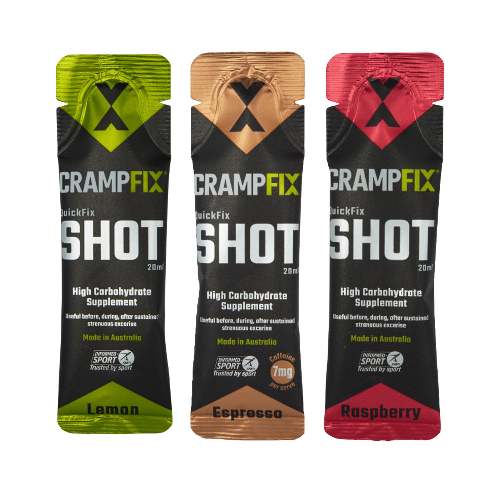 Fixx Nutrition’s Crampfix Shot provides rapid cramp relief for endurance athletes. It has been trusted and used by athletes and sports teams worldwide. One 15-20ml shot of CrampFix works within 1-2 minutes to alleviate cramps.