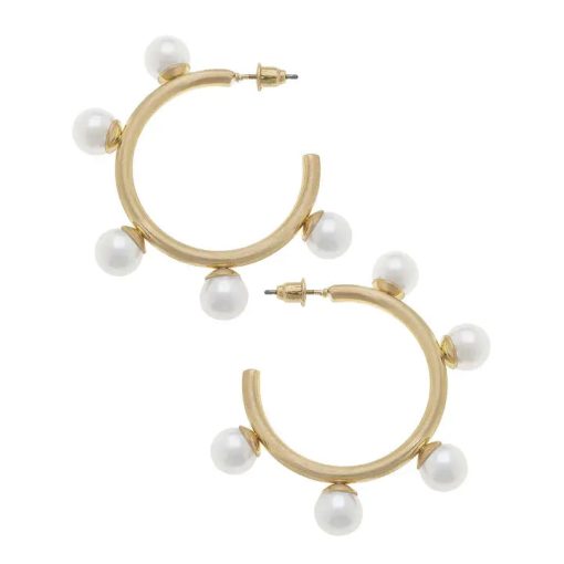 Add some playful elegance to your look with the Allison Pearl Studded Hoops. These statement earrings feature pearl detailing on classic gold hoops, perfect for adding a touch of quirkiness to any outfit.