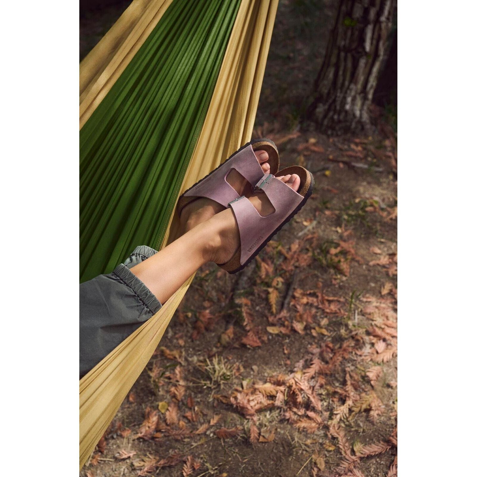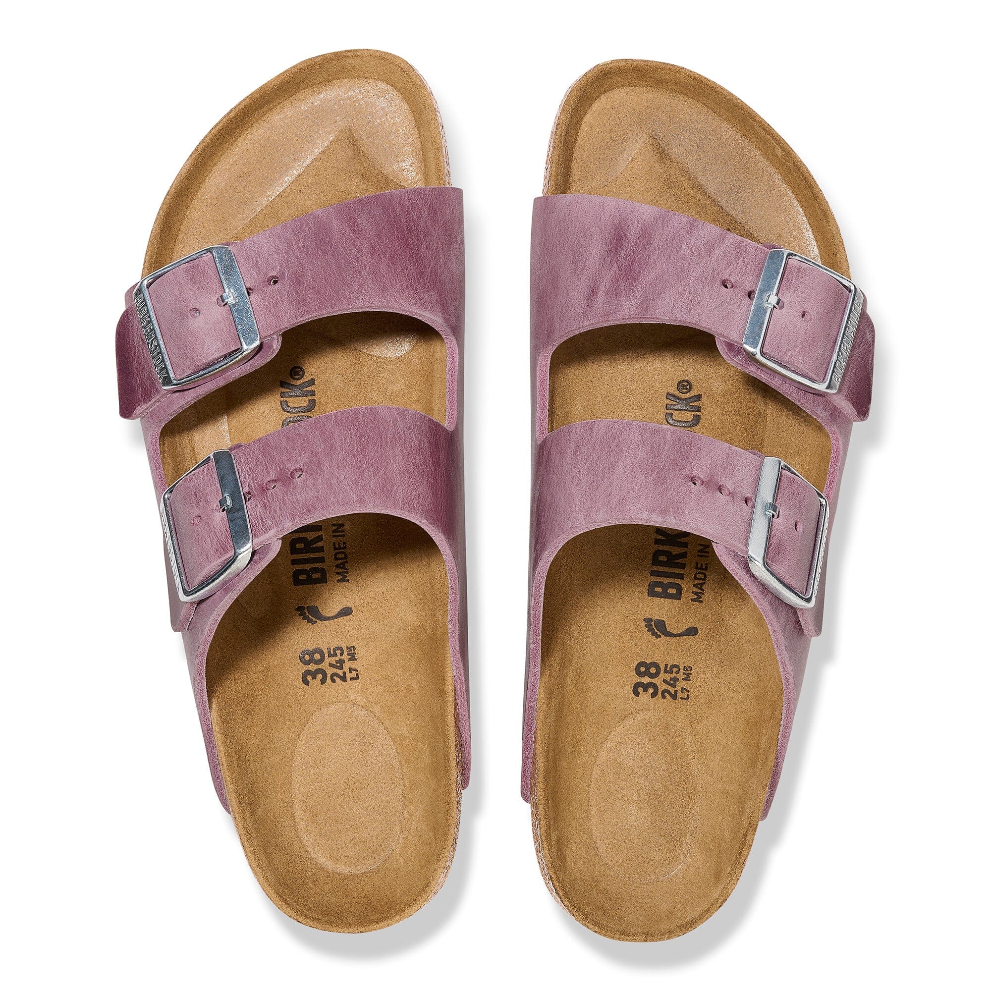 The Birkenstock Arizona Lavender oiled leather is one of Birkenstock’s richest, most durable leathers and sits atop the classic footbed to deliver maximum firm support. Its cork molded footbed shapes into your own personal orthotic. There’s nothing healthier for your feet than walking in your own footprint!