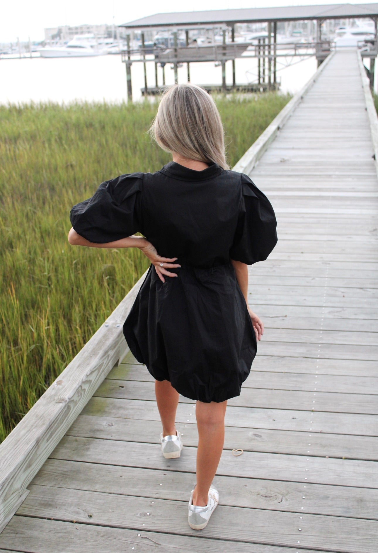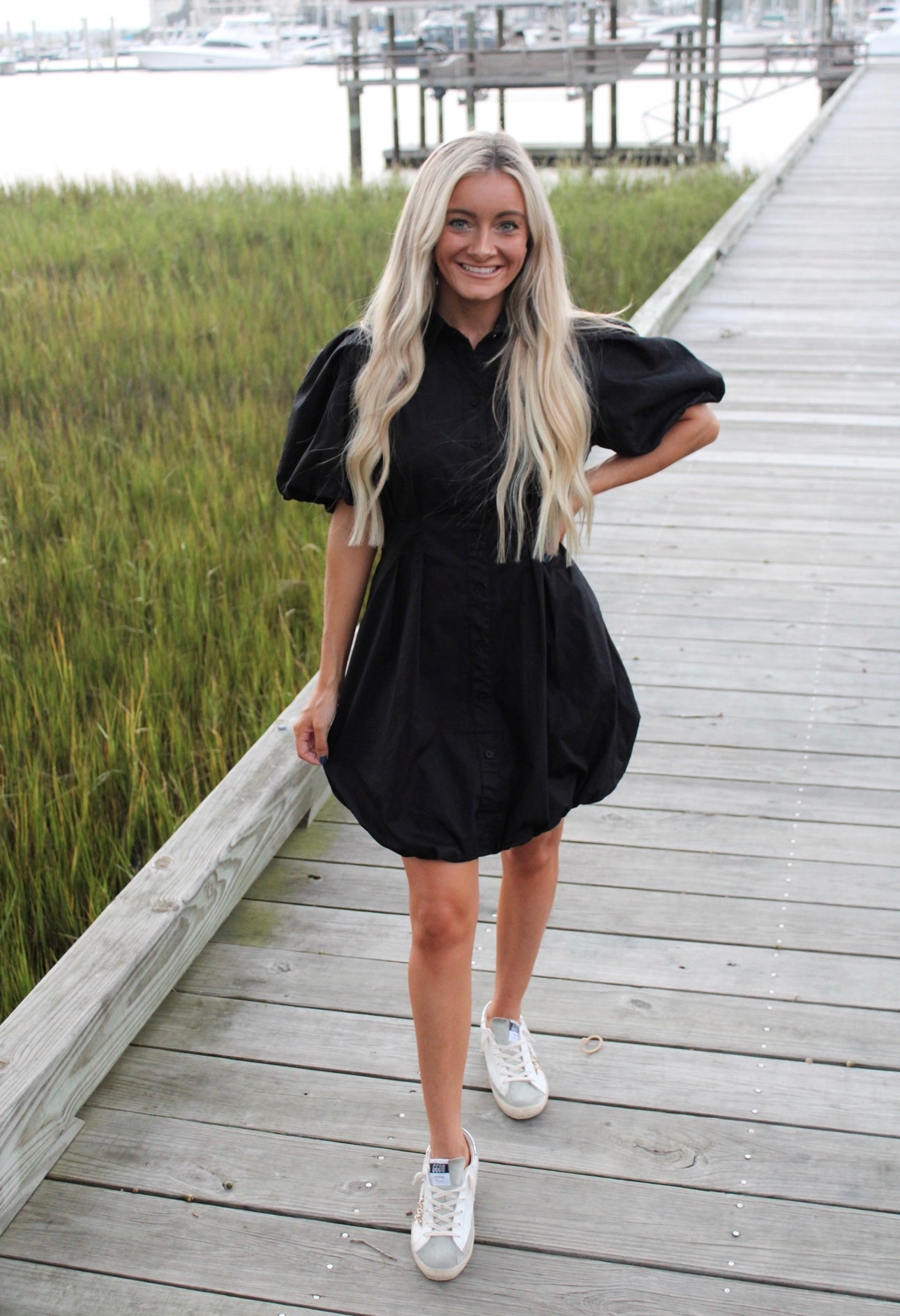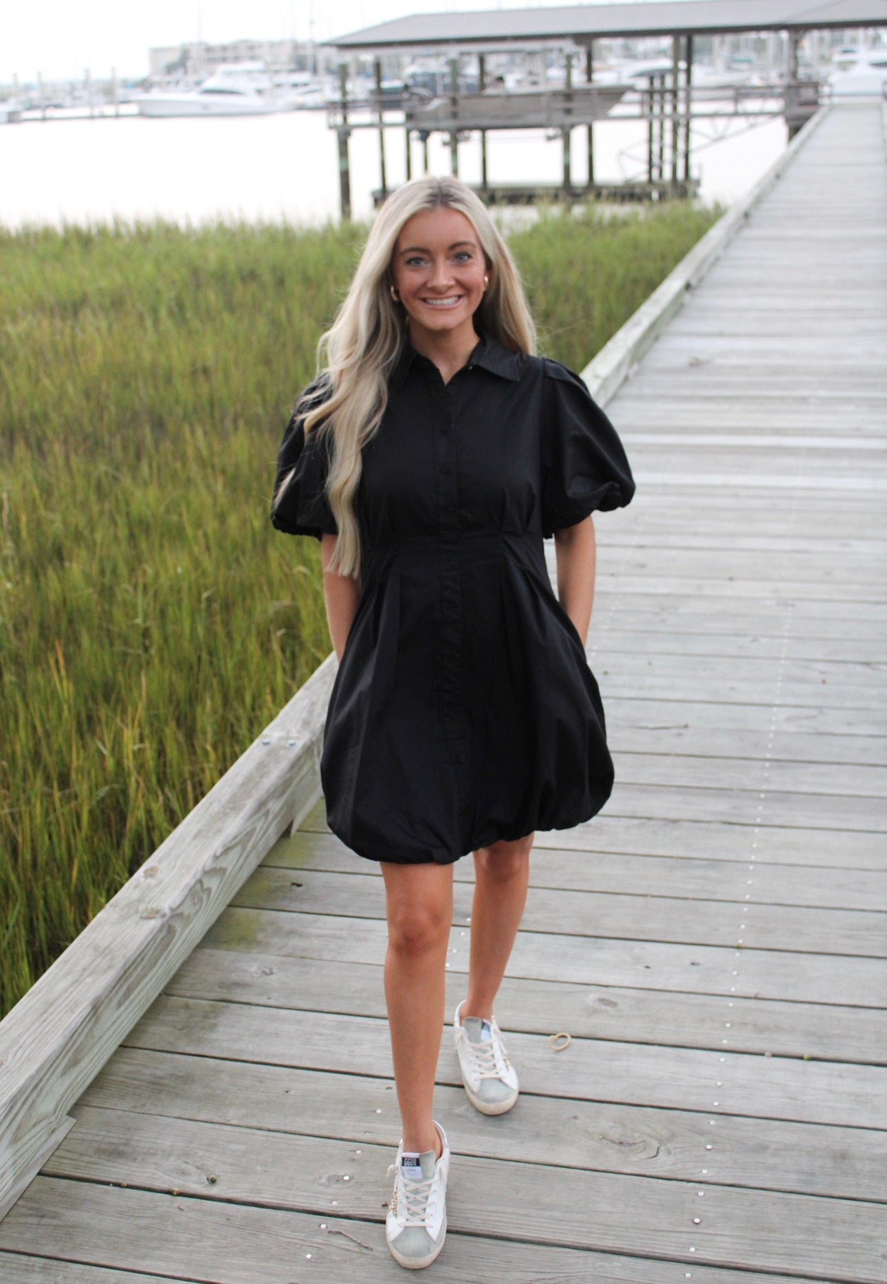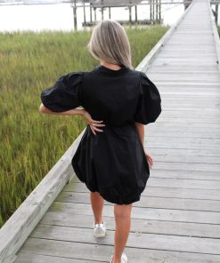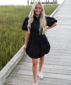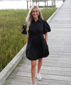 - Our Lyrick Collared little black dress gives you the fitted waist look with puff sleeves. It buttons down & is fully lined. A must have staple piece!