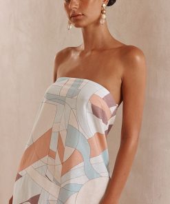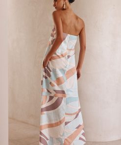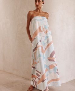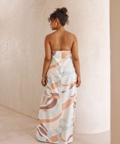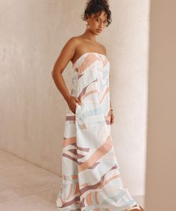 Introducing our exclusive new Halcyon print! The Noah Dress is made from a natural linen cotton blend fabric and features a strapless neckline, twin pockets and flouncy maxi skirt with a wide hem. Pair it with the Wynn Sunglasses and Tiera Platform Sandals. Designed exclusively by Sabo.