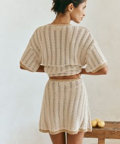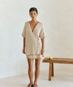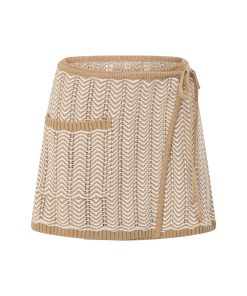 Wear it as a set or pair it back with a white tank, the Reims Skirt is made from a natural woven cotton fabric. It features tan and white zig zag stripes throughout, a high waist, wrap panel at front with tie at side, square pocket detail and contrast tan ribbed trims. Get the set with the Reims Top! Designed exclusively by Sabo.
