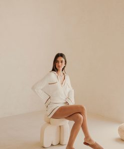 *RESTOCKING* A SABO signature set, the Adair Shorts are made from a luxurious drop needle rib fabric in white. They are a high waisted style featuring an elasticated waist, contrast tan trim details and high-low hems. Get the look with the Adair Top! Designed exclusively by Sabo.