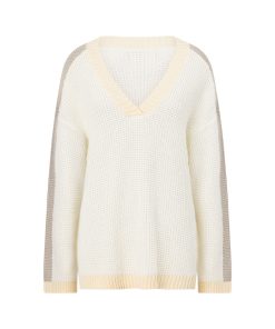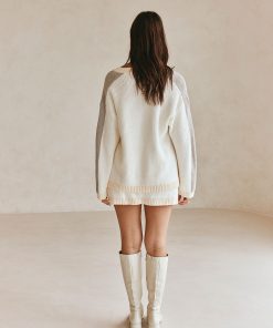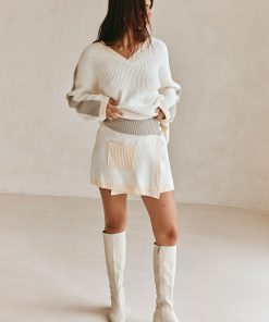 Wear it as a set or pair it with jeans! The Adelaide Sweater is made from a cosy cotton blend knit featuring contrast grey and cream panels, V neckline, ribbed trims and relaxed fit. Get the set with the Adelaide Skirt! Designed exclusively by Sabo.