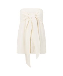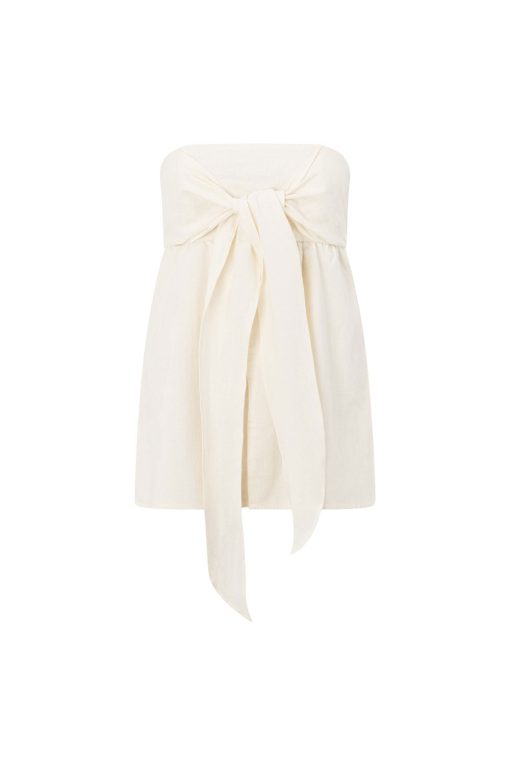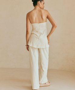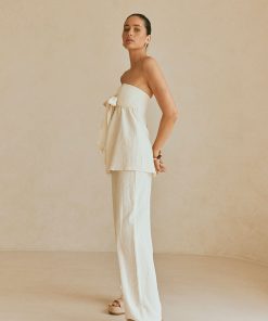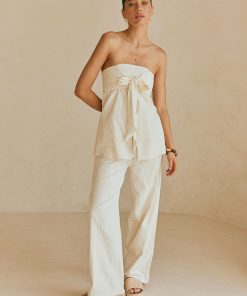 Wear it as a set or style it with a skirt! The Serena Top is made from a natural cotton fabric in a cream hue. It features a strapless neckline, tie detail at bust, split detail at centre front and longline hem. Get the set with the Serena Pants! Designed exclusively by Sabo.