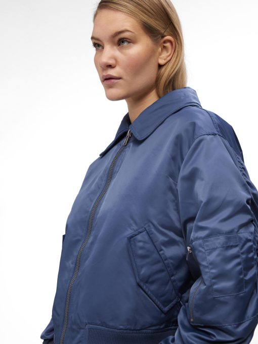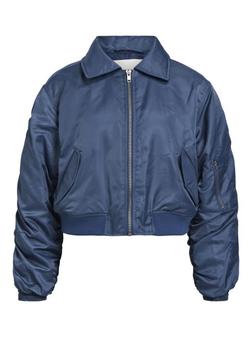 The ULA Bomber Jacket features a classic bomber style with a central zipper and two front pockets, as well as a zipped arm pocket. The gathered detail along the sleeves, elasticated cuffs and ribbed hem elevate this must have jacket.