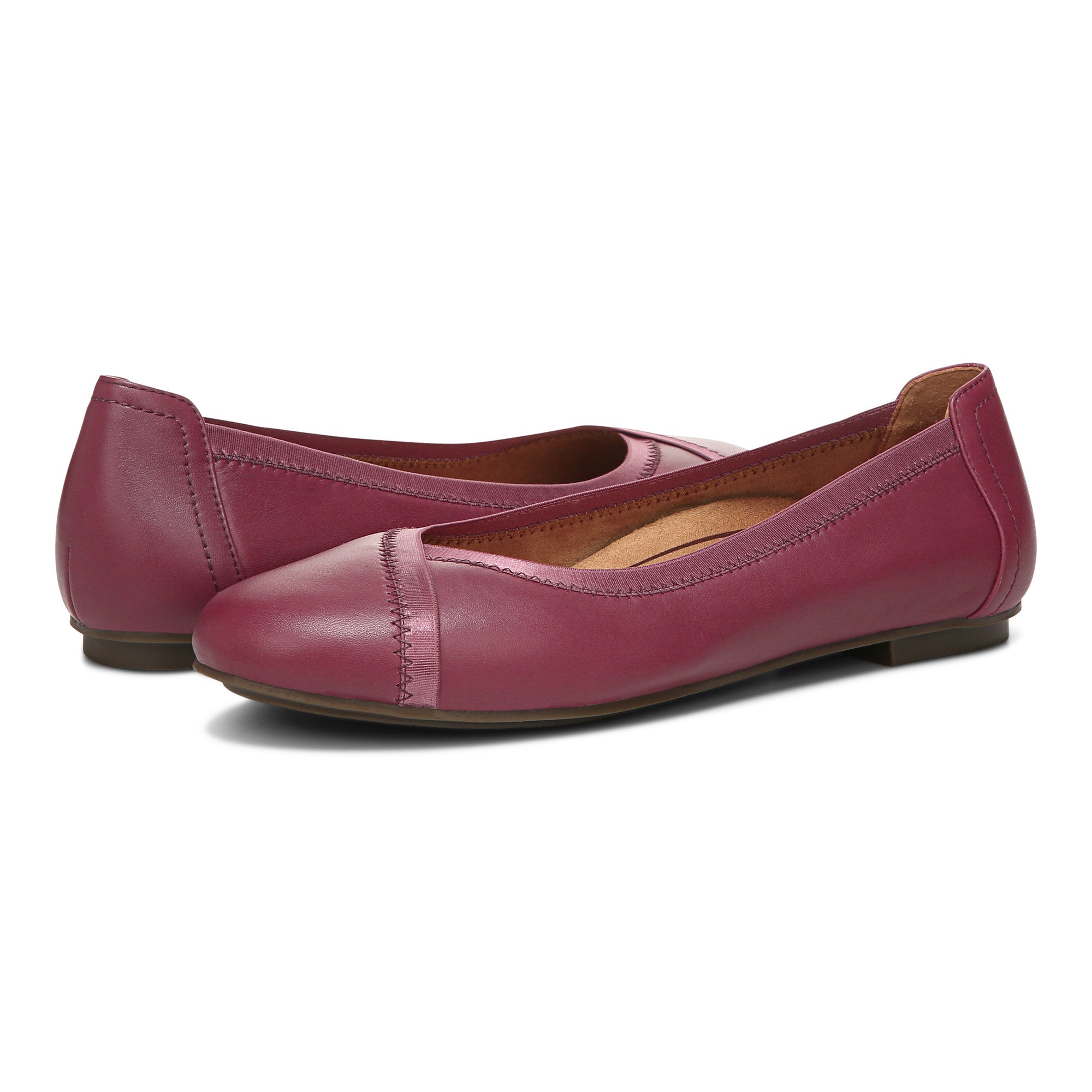 Vionic’s classic Caroll ballet flat gets an upgrade, with a soft elastic top line accented by delicate stitching and crossover detail above the toe cap.