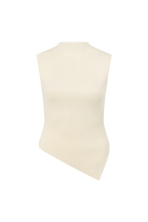 A striking set designed to flatter! The Ellamay Top is made from a structured ribbed knit in a cream hue. It features a high neckline, contrast rib details and a pointed asymmetric hem. Get the look with the Ellamay Skirt and style with the Asuka Platform Sandals! Designed exclusively by Sabo.
