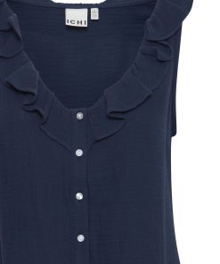 Effortlessly chic, the MIRKA top features a ruffled v-neckline and front button closure. Made of soft cotton, this stylish top is perfect for keeping cool in the summer. The sleeveless design allows for easy layering and a versatile look.