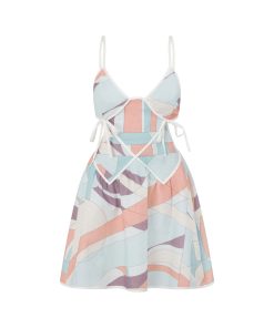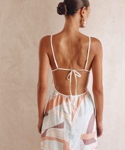 The ultra flattering Backless Amie Dress is made from a high quality linen cotton blend fabric with our exclusive Halcyon print. It features an open back, adjustable straps, cutouts at waist with tie details, contrast white bind panels and trims throughout and a flowy mini skirt. Style your look with the Dia Heels! Designed exclusively by Sabo.