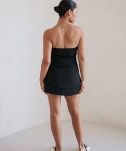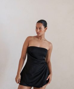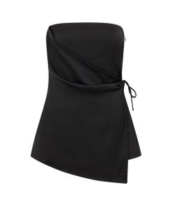 The ultra chic Kleo Top is made from a matte silky fabric in black. It features a strapless neckline, drape panel at waist with tie detail and longline hem. Get the set with the Kleo Skirt and pair it with heels! Designed exclusively by Sabo.