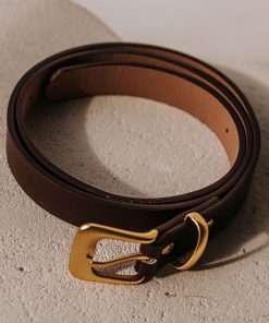 Polish your look with the Tamara Belt, made from a premium vegan leather in a chocolate hue with gold toned hardware.