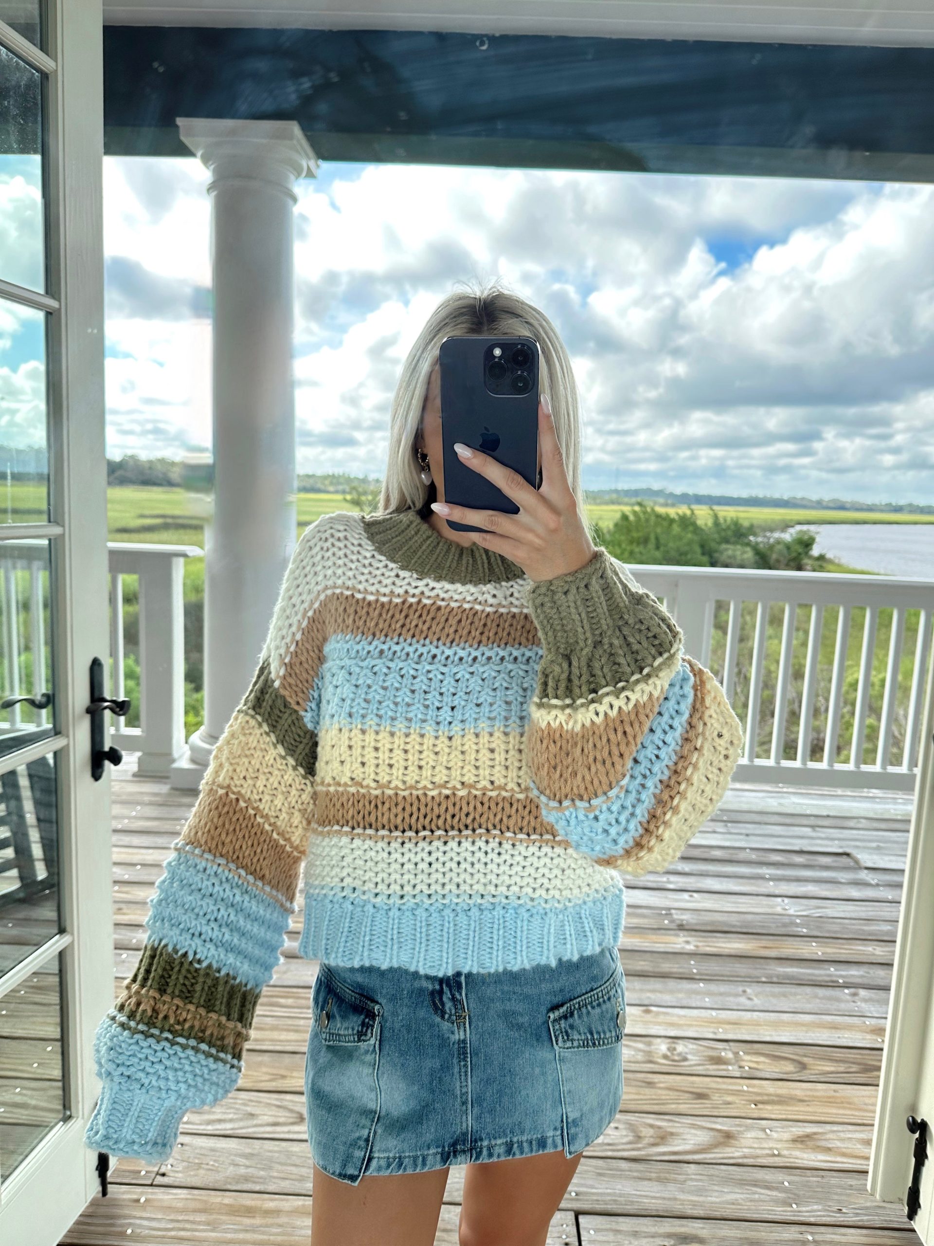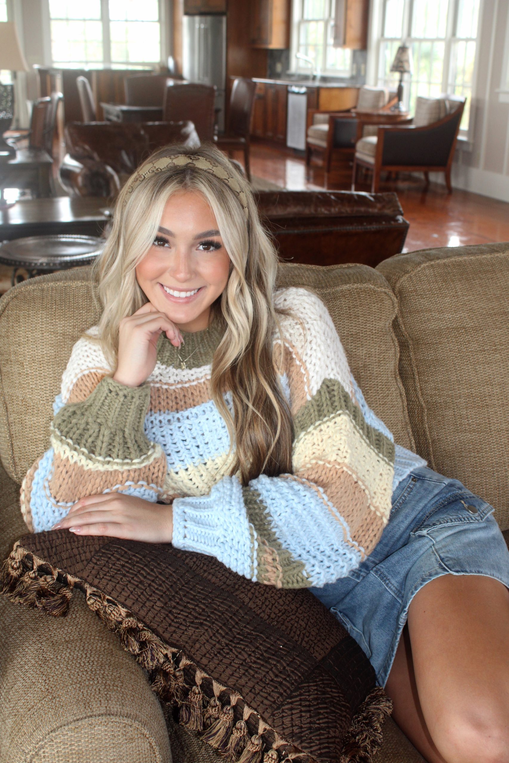 Introducing our Shiloh sweater! It features a multi colored striped combo with a mock neckline. This sweater is made up of the most perfect fall colors!