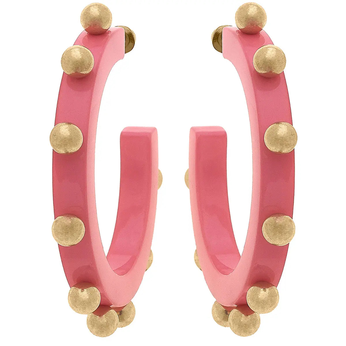 Add a pop of fun and color to your look with our Studded Hoops Earrings in Bubble Gum Pink! Perfect for Valentine’s Day, these earrings will surely make a sweet statement. Don’t miss out on these cute accessories!