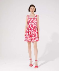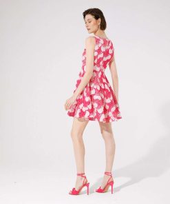 The Mula mini dress will be particularly perfect for a summer wedding. With a deep pink floral pattern set against a crisp white base, square neckline, wide shoulders straps and flared skirt the Mula is a classically feminine and fresh look.