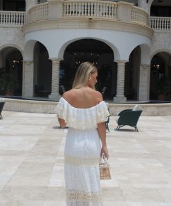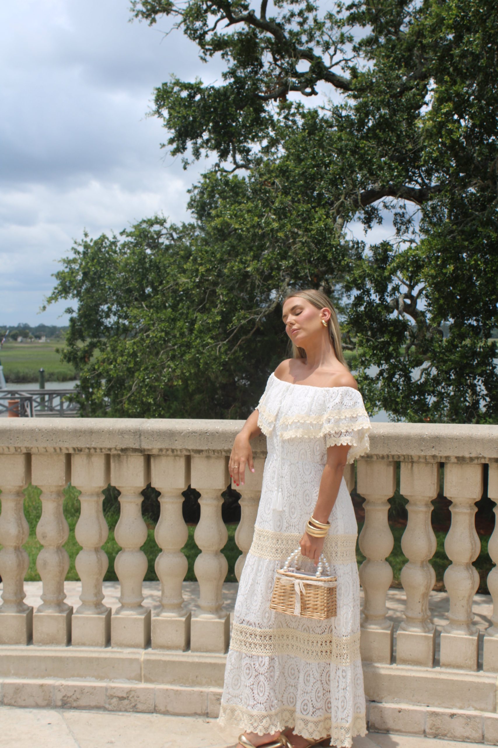 Elevate your style with our Sable Maxi Dress! It features a tiered lace design with crotchet accent drop shoulders. Look and feel beautiful in this dress!