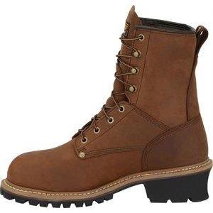 Men’s 8 Inch Steel Toe Waterproof Insulated Logger. From big wood to peeler poles, these boots give you the foundation you need for a hard day’s work. They’re waterproof and moderately insulated with 600 Grams of Thinsulate insulation to keep out the weather. They have tough steel shanks for extra stability. Their sure-grip rubber soles keep your feet planted where you put them. And they have steel toes. Serious work boots.