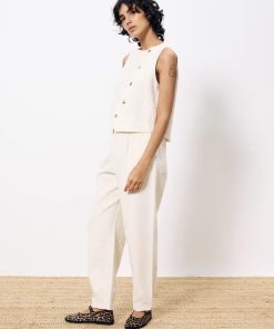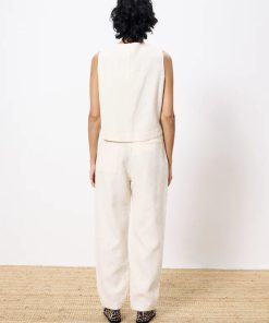 The Pepita pants from FRNCH are made from a linen blend fabric, have a straight loose style cut with darting to the front and button detailing at the back. Pockets to the side and back complete the look. For effortless chic pair with the matching Pamphilia top for an elegant tonal look.