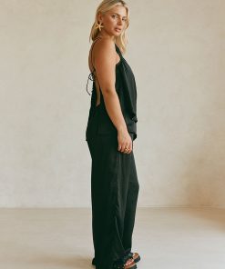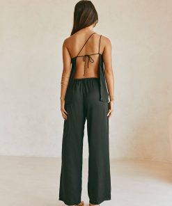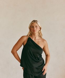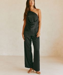 Dress it up with heels for dinner with the girls, the Adeline Top is made from a matte silky fabric in black. It features an open back with one shoulder detail, draped panel across front and regular fit. Get the set with the Adeline Pants. Designed exclusively by Sabo.
