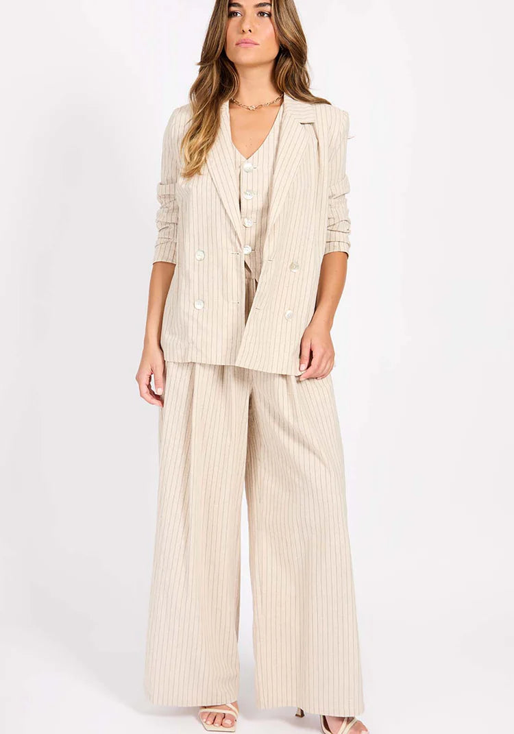The Logan blazer is made with a breathable linen blend fabric and features a stripe pattern. It has a classic collar, double breasted style and regular fit. Perfect for pairing with the matching co-ord Logan trousers and waistcoat, ideal for both casual and semi-formal occasions.