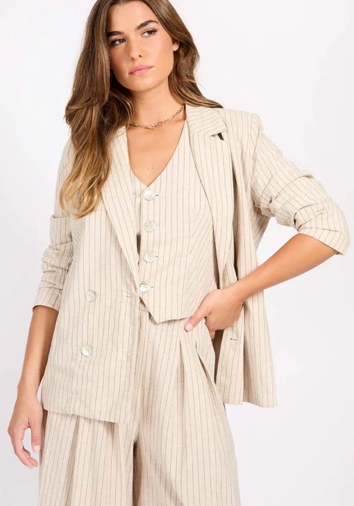 The Logan blazer is made with a breathable linen blend fabric and features a stripe pattern. It has a classic collar, double breasted style and regular fit. Perfect for pairing with the matching co-ord Logan trousers and waistcoat, ideal for both casual and semi-formal occasions.
