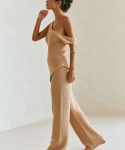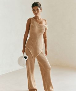 Wear it as a set or pair it back with jeans, the Sienna Top is made from a natural cotton knit fabric in a tan hue. It features an asymmetric neckline, slung arm strap and a longline pointed hem. Get the look with the Sienna Pants! Designed exclusively by Sabo.