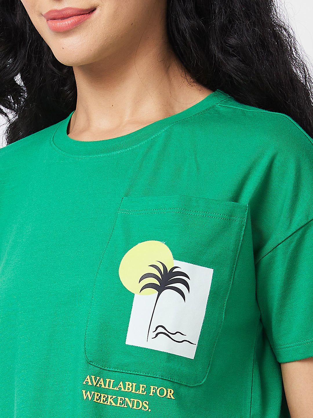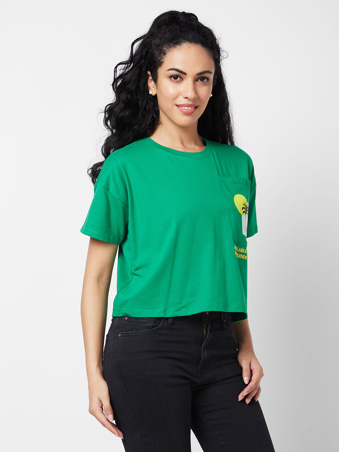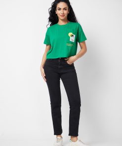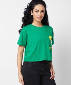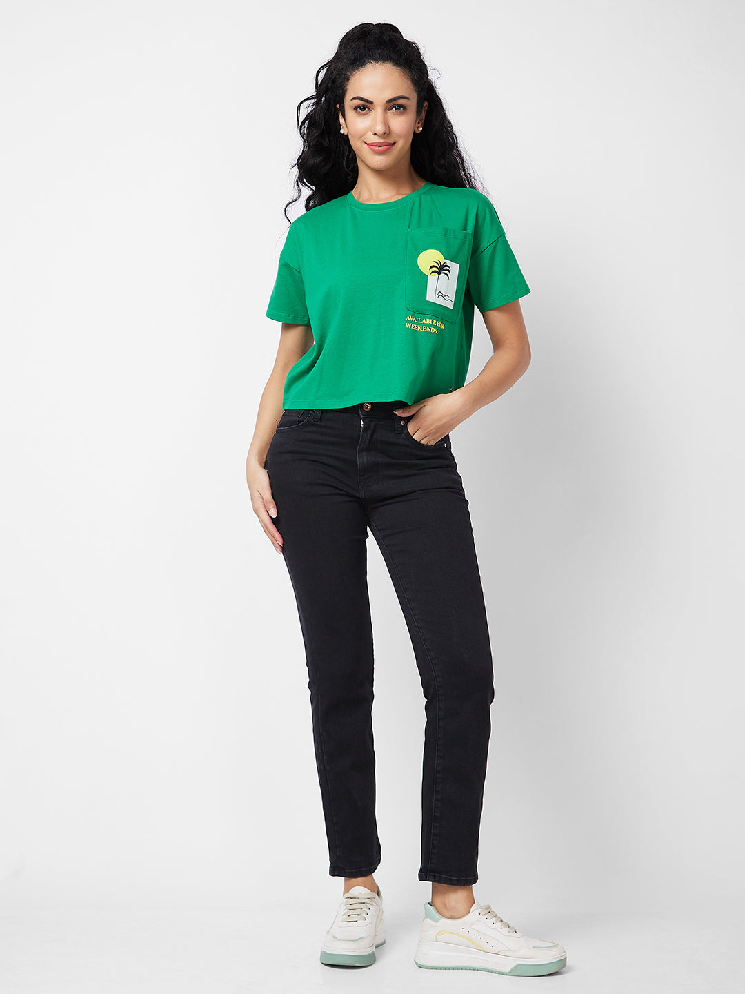 VIP Favorite Spykar Round Neck Half Sleeves Green T-shirt For Women – Last Chance!
