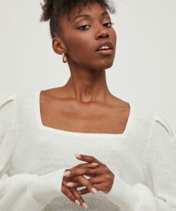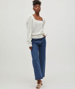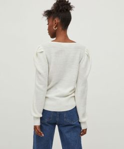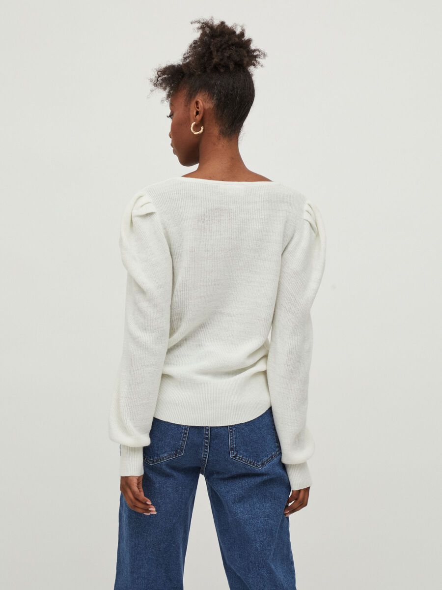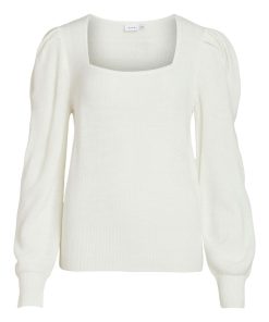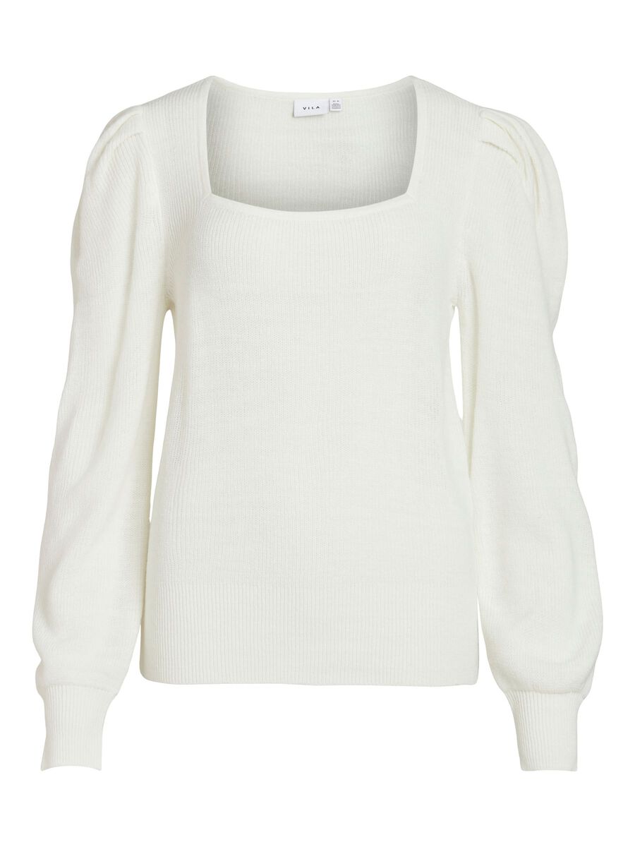 With a square neck, puff shoulders and ribbed edges this stretchy knit from Vila is both stylish and practical. Perfect for wearing alone over jeans and skirts or for layering over a shirt.