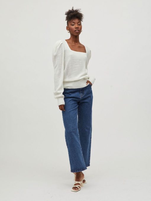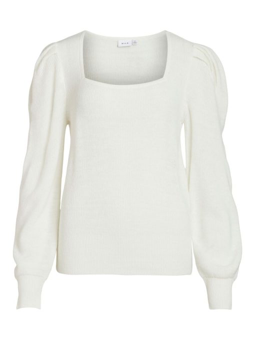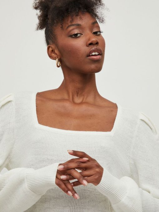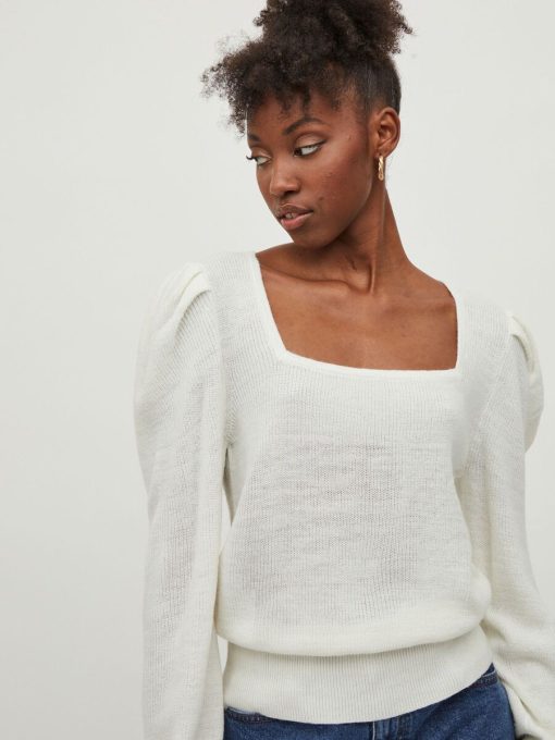 With a square neck, puff shoulders and ribbed edges this stretchy knit from Vila is both stylish and practical. Perfect for wearing alone over jeans and skirts or for layering over a shirt.